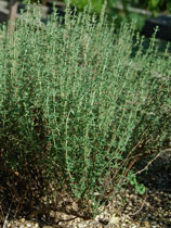 | タチジャコウソウ | 日本のイブキジャコウソウの近縁種ですが原産地は地中海沿岸です。日本には明治初期に渡来しました。香辛料などに栽培される小低木です。樹高は20〜30cm、茎は叢生し、下部では匍匐しますが上部では直立します。花期は5〜6月、薄紫色の小さな花を輪散花序につけます。ハーブでコモンタイムというのはこの種です。 |